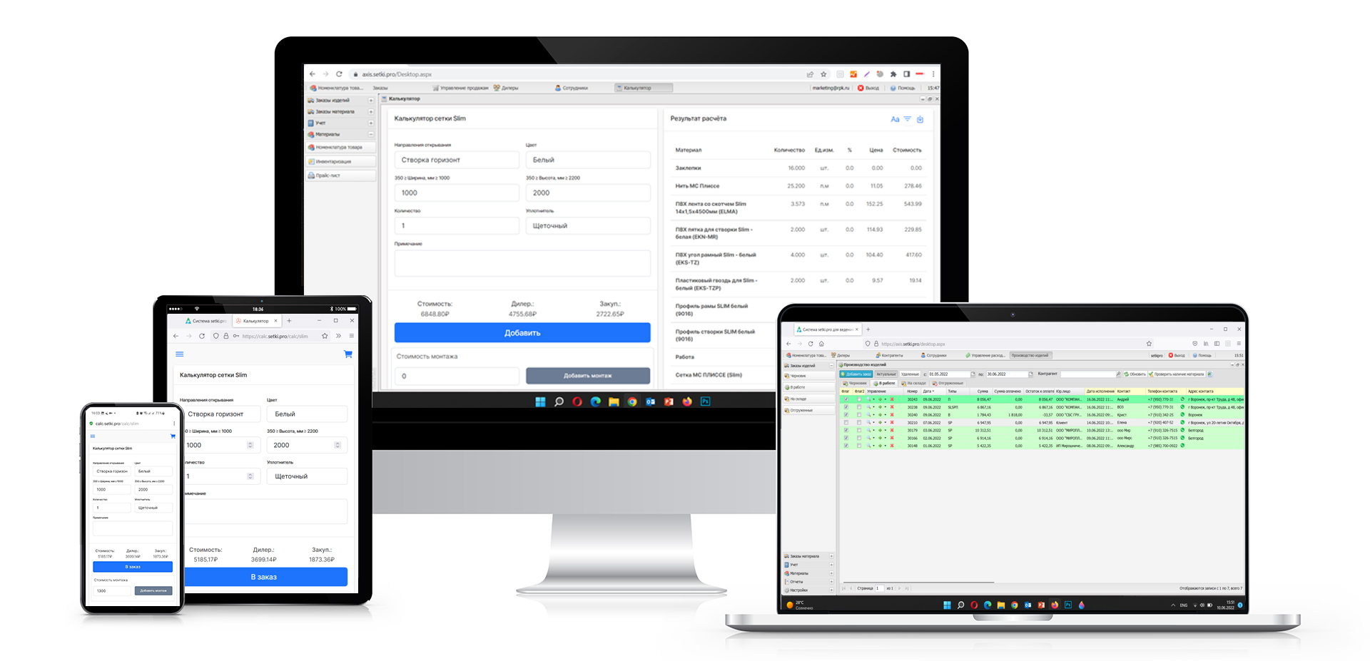 Система управления заказами и калькуляции стоимости москитных сеток